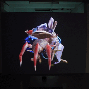 Heemskerk and Paesmans use of projection is unique as they utilize programs like Blender to create 3D models that are then animated to move about the screen in a variety of different ways. Multiple artworks of theirs utilize this method which uses model manipulation and projection to create a 3D feeling to the work when it is in fact 2D. I really like this idea of creating 3D work and it isn’t something I’ve seen a lot of. Most digital work has to be 2D due to the nature of the technology used to present it. Even when projected on a raised surface the work need exterior help to add texture to it’s appearance. However JODI attempt to to this without that and even though it’s not as effective as a 3D object the innovative idea is still interesting.