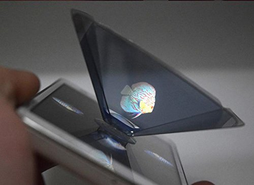 The 3D Projection Pyramid is an easy to build and simple structure that consists of four plasic sides arranged to create a bottomless pyramid. This is then placed on top of a screen and a specially arranged video is played beneath. The screen reflects the video in the sides of the pyramid and creates the illusion that a 3D image exists inside.
