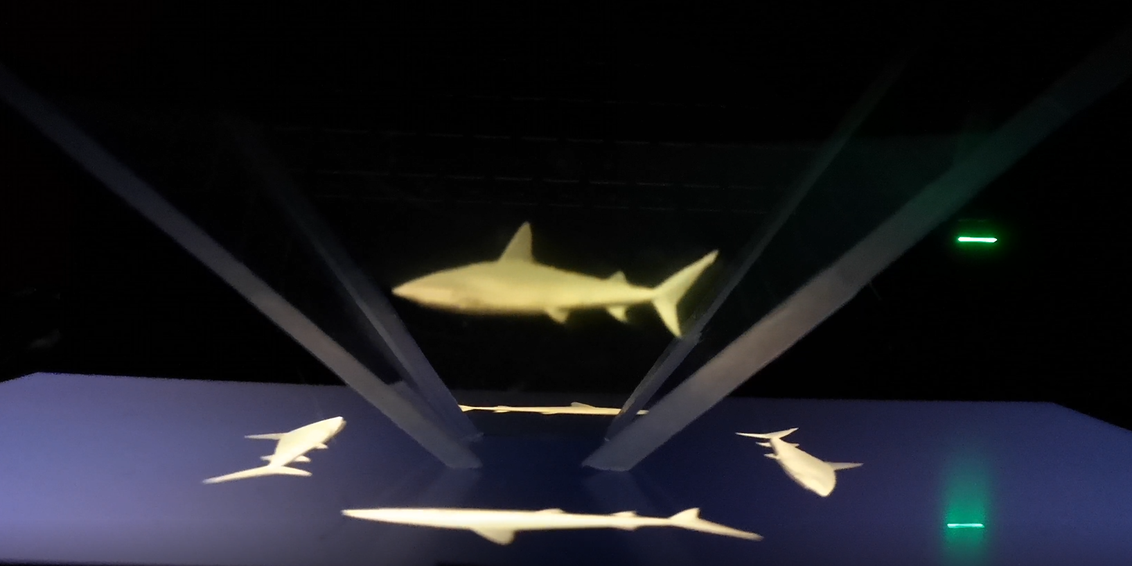 After building my first Pyramid Projector I tried it out on my computer screen both in the dark and with the light on. The projector was far more successful in the dark as the light it reflects shows up more when unobstructed by other light sources. The pyramid also needs to be close enough to the screen to capture the reflection of the image but not so close as to squash it and make it hard to see.