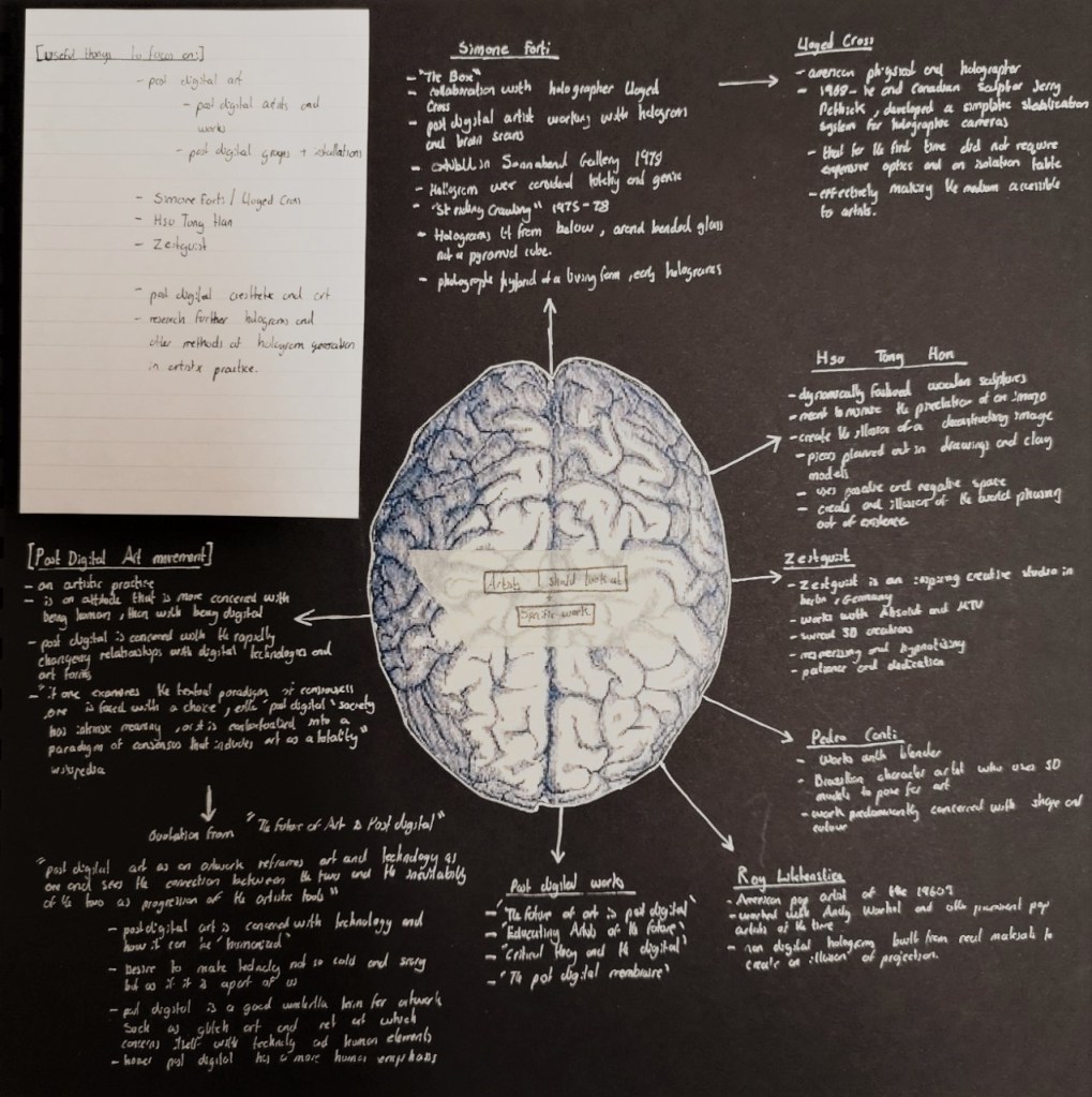 This year I want to really run with this idea of digital sculptures and continue to work with holograms and maybe other ways to making 2D digital work 3D, however try to use it as an idea in exploring other subject matter than may not always link to the idea of holograms or digital art. (In short, a painter doesn’t paint about painting, painting is merely the media he chooses. So, as I’d like to focus on digital, I see holograms as mostly a good way of resenting work, but not necessarily what the work needs to be about).