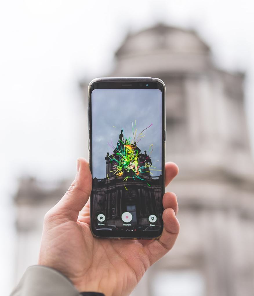 One really interesting thing about AR is its use of virtual mapping which means that you can scan and map a large space. Most easily available AR apps work by utilising the small space which can be seen through a camera phone, but more advanced AR can use more expansive Virtual Mapping to scan a bigger area containing walls and other objects so that digital objects can have greater and more accurate integration.
