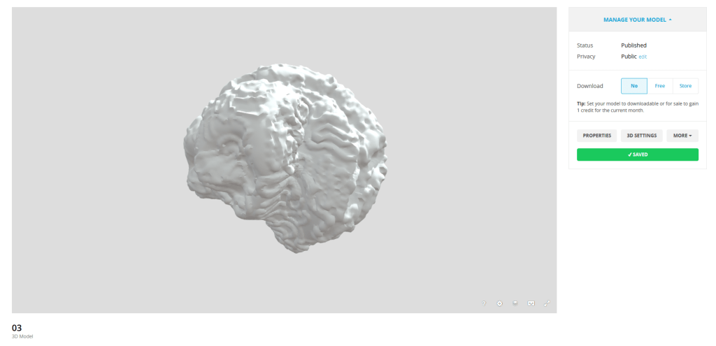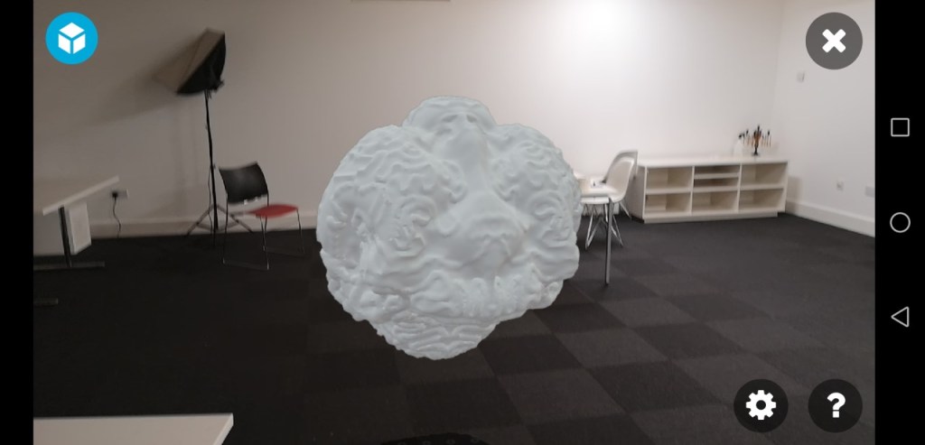 Now the important thing I’ve learned about digital art is that many programmes refuse to work together and finding software that is compatible with other software you want to use is difficult. Especially when the software you want to use has only been out for a year. The software I have decided to use to display and store my digital sculptures is Sketchfab. For a small fee you can upload up to 20 a month and it allows you to alter AR settings and create ‘collections’ to show case them. Sketchfab has an online site which is the easiest to use that I have seen. They recently released a sister app of sorts called SkethAugment. An app that gives you greater control over AR settings allowing you to use sound and distance and greater virtual mapping, well worth the small subscription.