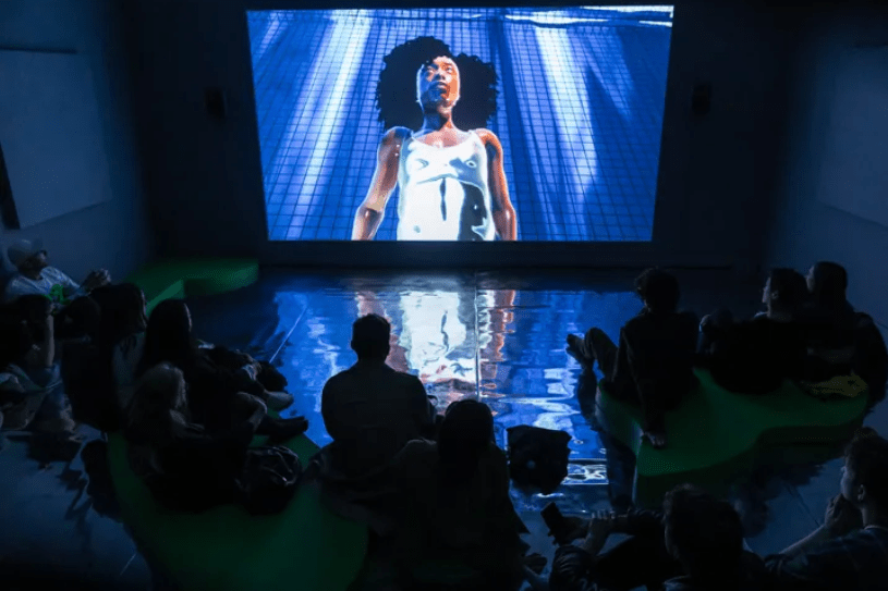 The film, set in a future when climate crisis has rendered Earth inhabitable, explores the daily lives of three characters and their experiences in the multiple realities – Pome Sector (a corporate wellness world), 068 (a roleplaying VR world), and Base Reality, or what we currently know as earth. The characters navigate the challenging landscape in the world’s unforgiving points system. Keiken’s goals of unlearning norms of the current world is included in one of these realities. “In 068 you are in a constant state of learning and unlearning where you unlearn from role play by occupying different bodies and learn through connecting with your senses,” Keiken explains.