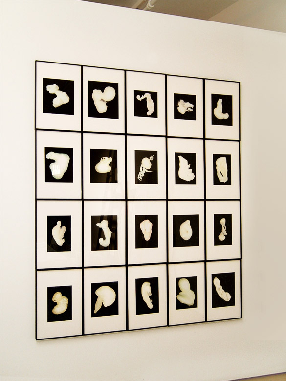 Ankers work to me is very receptive of biology and also expressive of those natural shapes and figures that arise from labs and dissections, but mostly from growth of cells and organs. The symmetry of her models is hypnotizing in a way and gives this very real feeling of being naturally occurring objects in nature as opposed to just Art. Her other works that revolve around small clusters of cells are not that interesting to me compared to her sculptures made from plaster that mimic biology despite being synthetic. Given my work try’s to achieve a similar aesthetic, her work is hugely inspirational.