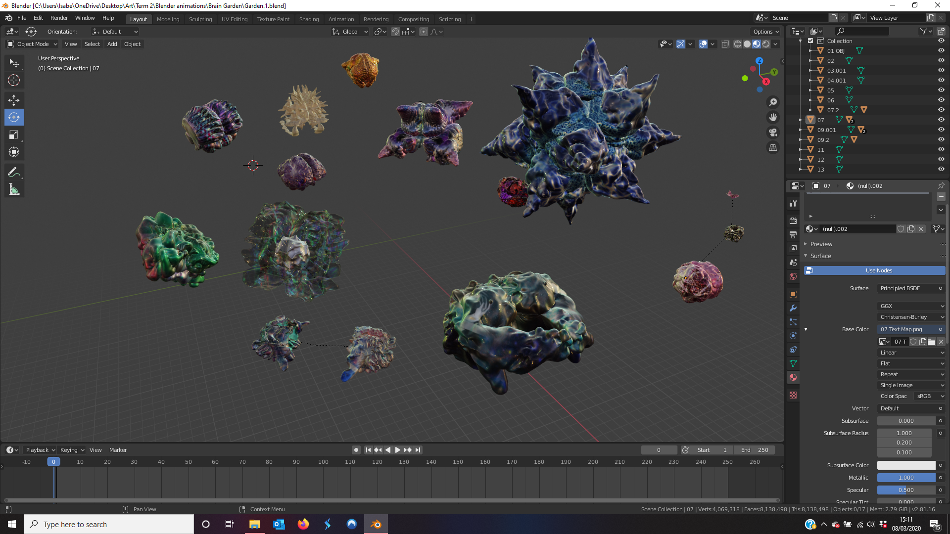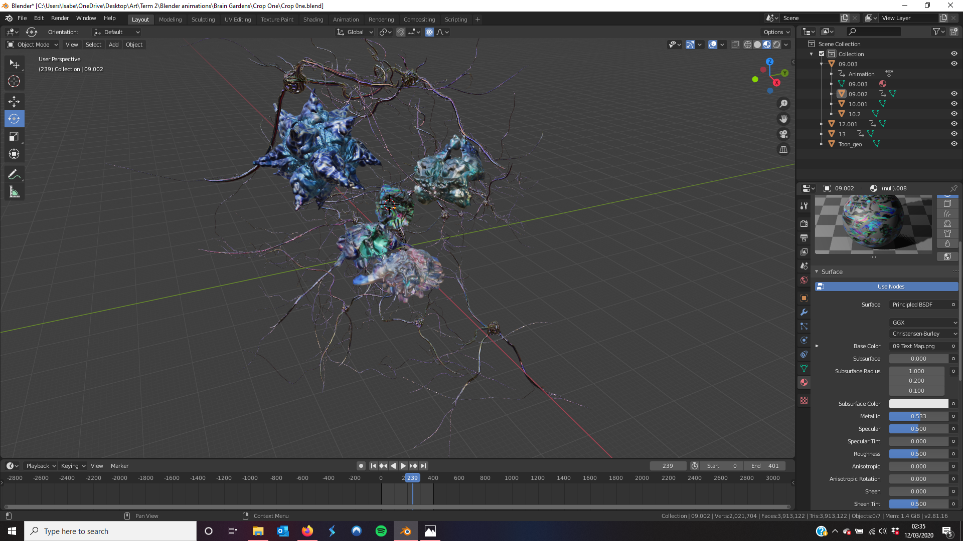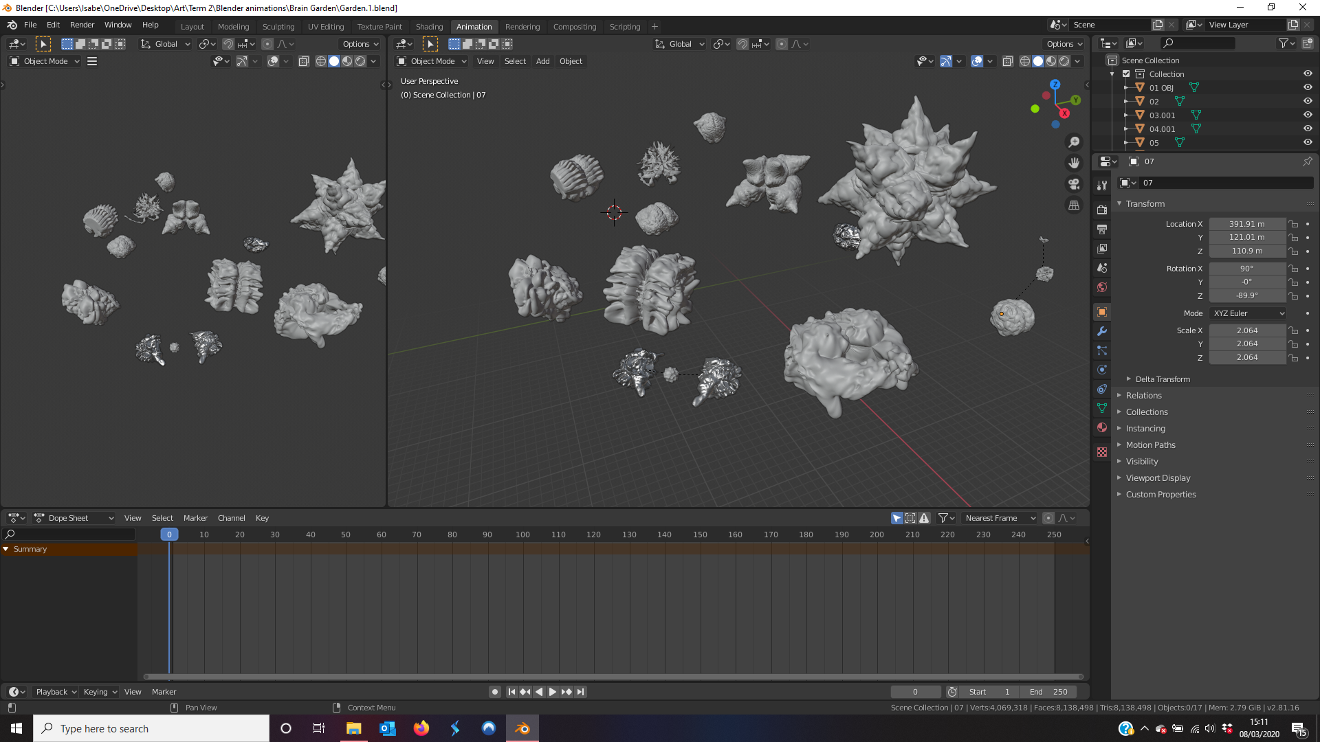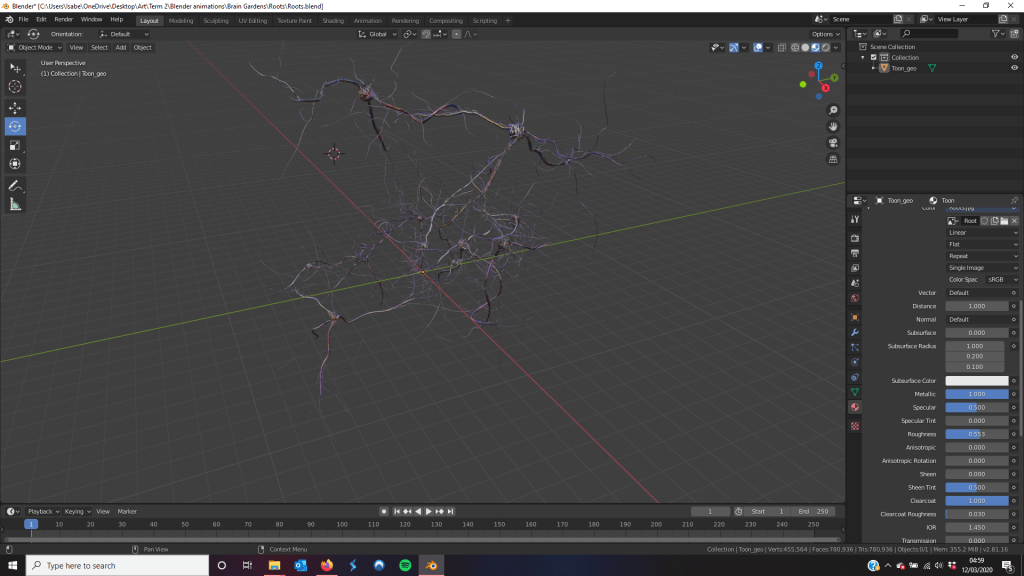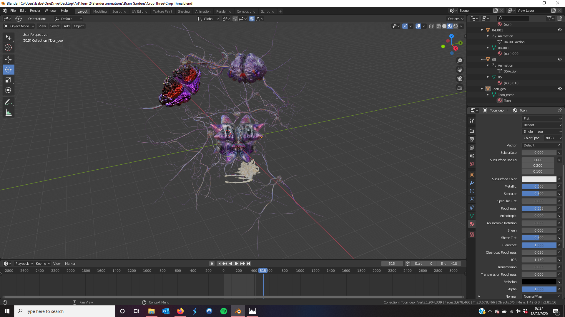 Now that I have a good number of models, I can start assembling a ‘brain garden’. My original ideas was something I realised I couldn’t do because of technical limitations however just for purely theoretical purposes I decided to create a test version of it. (Unfortunately, I was correct in that the software I was using was not capable of loading a 3D model over 500MB. I tried to look for different software however it seems that commercial AR is limited). I did this because I wanted to try to visuals my initial idea even if I couldn’t use it, just to show my intentions.