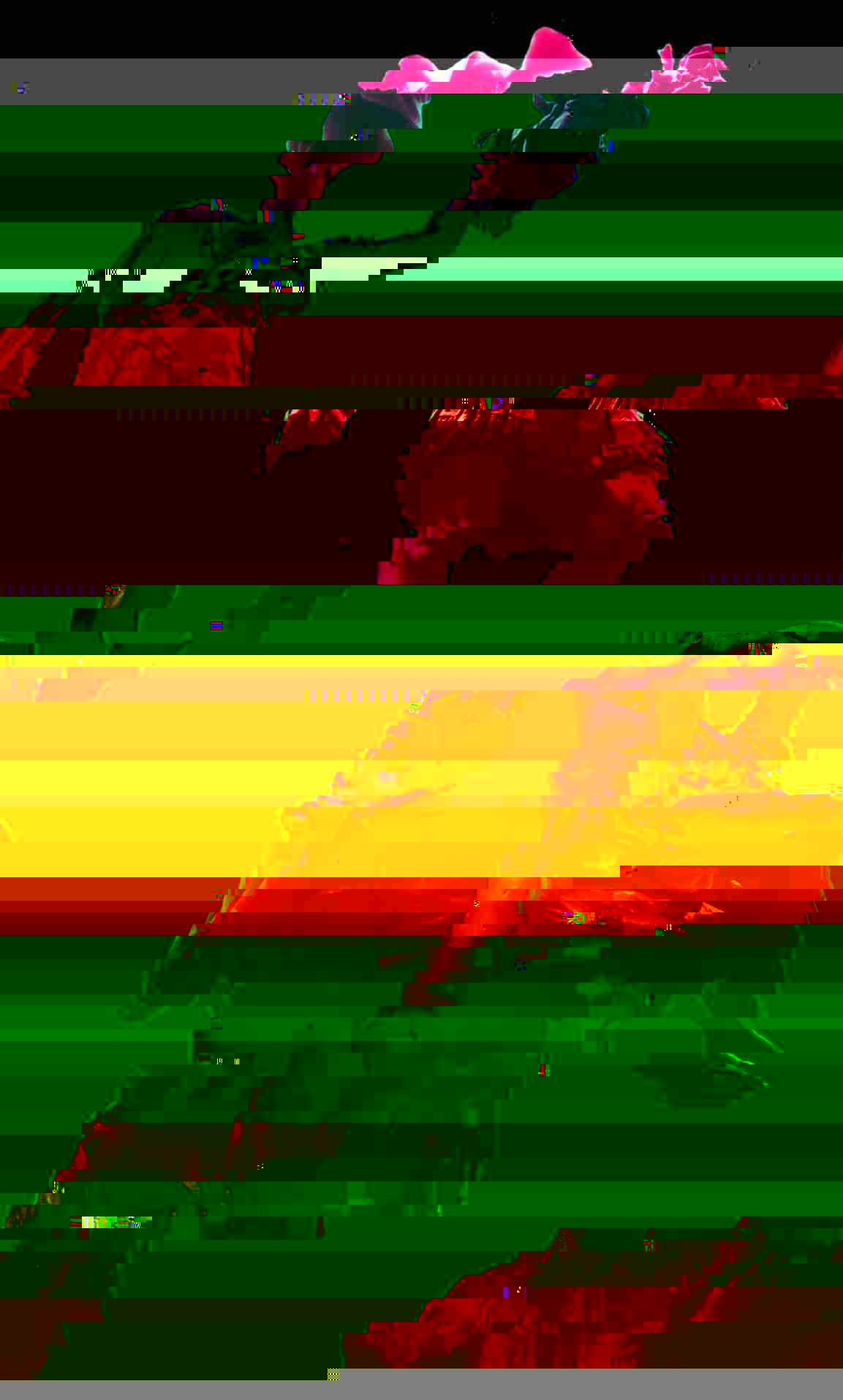To Hex a file is to essentially alter the code within an image (or any other file type) in it’s text format, changing values and lines of code that determine how it appears visually. Usually I would use a photo editor to create this effect, but the particular look of a hexed image is less deliberate and aesthetically more obvious as a ‘mistake’ or ‘error’, the apperence of a hexed file more often associated with a technical problem as opposed to an artwork.